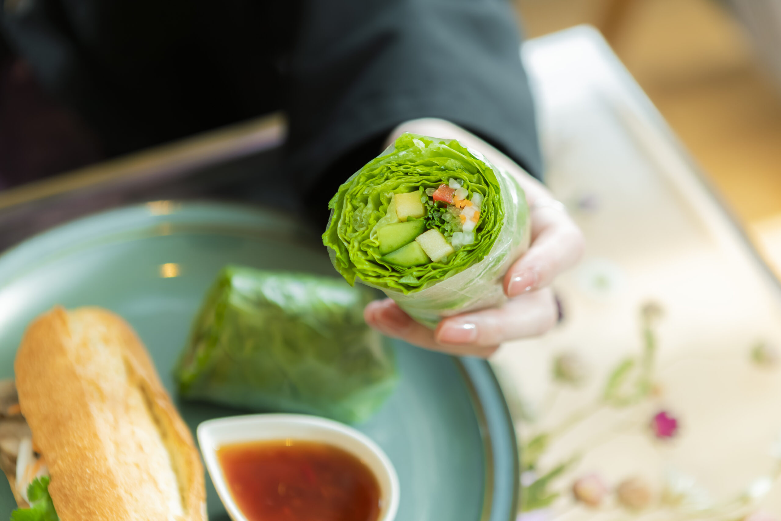 斎藤さんはご両親がベトナム出身で、ベトナムにご自身のルーツがあるのだそうです。そのため、幼い頃から慣れ親しんだ「バインミー」や「サラダ生春巻き」はどれもこだわり満載。現地では屋台で食べるものですが、『Cafe indecis』でいただけるベトナムフードは、店主さんの家庭の味に近いのだとか。