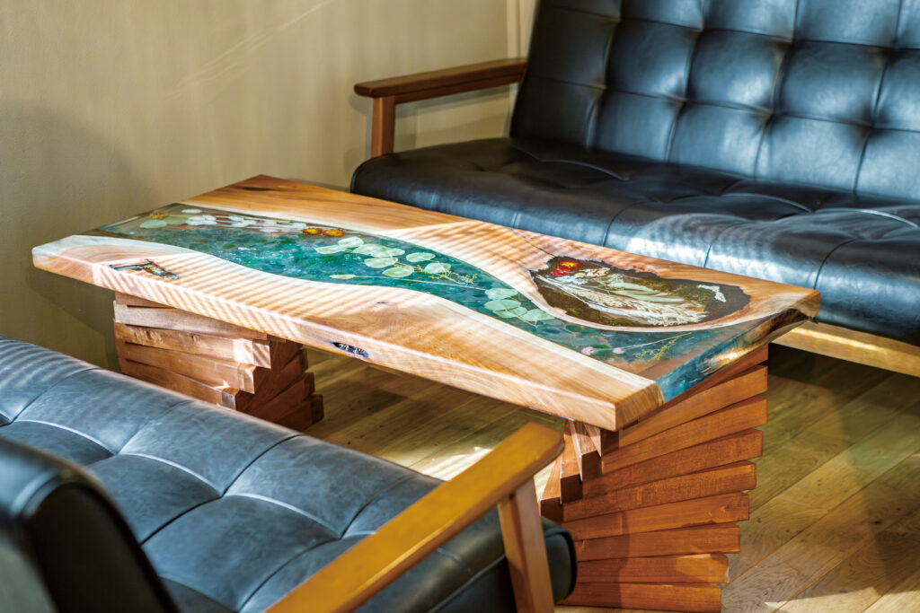 4. オーダーメイドのレジンテーブルが食事に華を添える