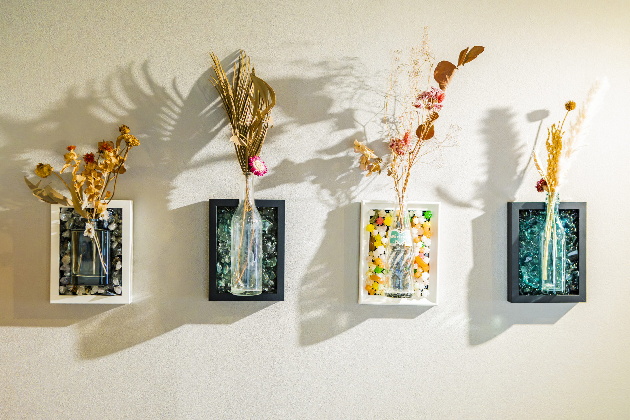 テーブルだけではなく、椅子や壁にかかっている花瓶などのインテリア、そして看板などもレジンを使った唯一無二のデザインの作品たち。店内をよく見ると、いろいろなところに飾ってあります。