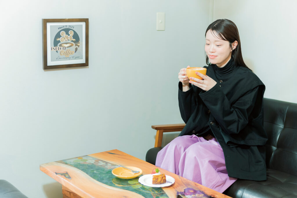 店名の「indecis」はフランス語で「優柔不断」という意味だそう。コーヒー、ドリンク、デザート、フードと充実したメニュー数で迷ってしまうくらいの展開をしているのと、店主・斎藤さんの優柔不断な性格を重ねているのだとか。