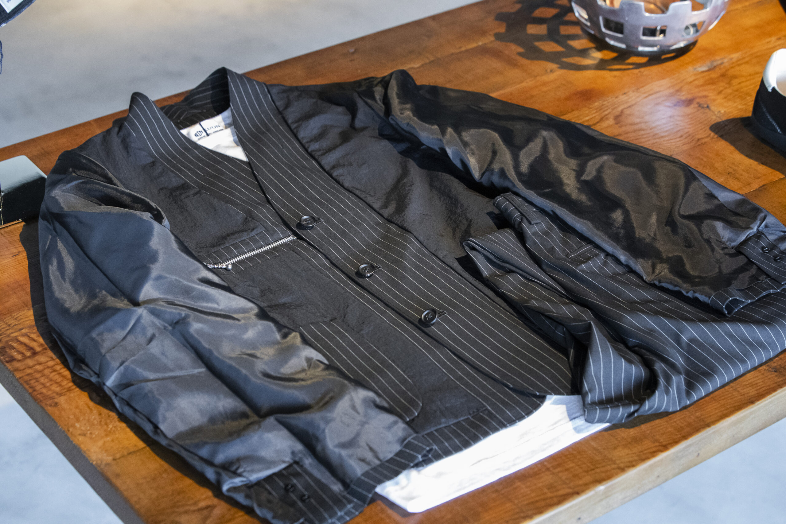 長谷川さんのおすすめアイテムは、KUONのリバーシブルキモノJKT。単品でも着られますが、ツータックトラウザーを合わせればセットアップも可。表裏で全く異なる表情なのが良いですよね。