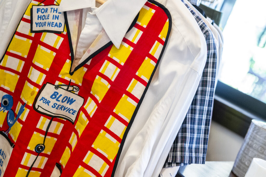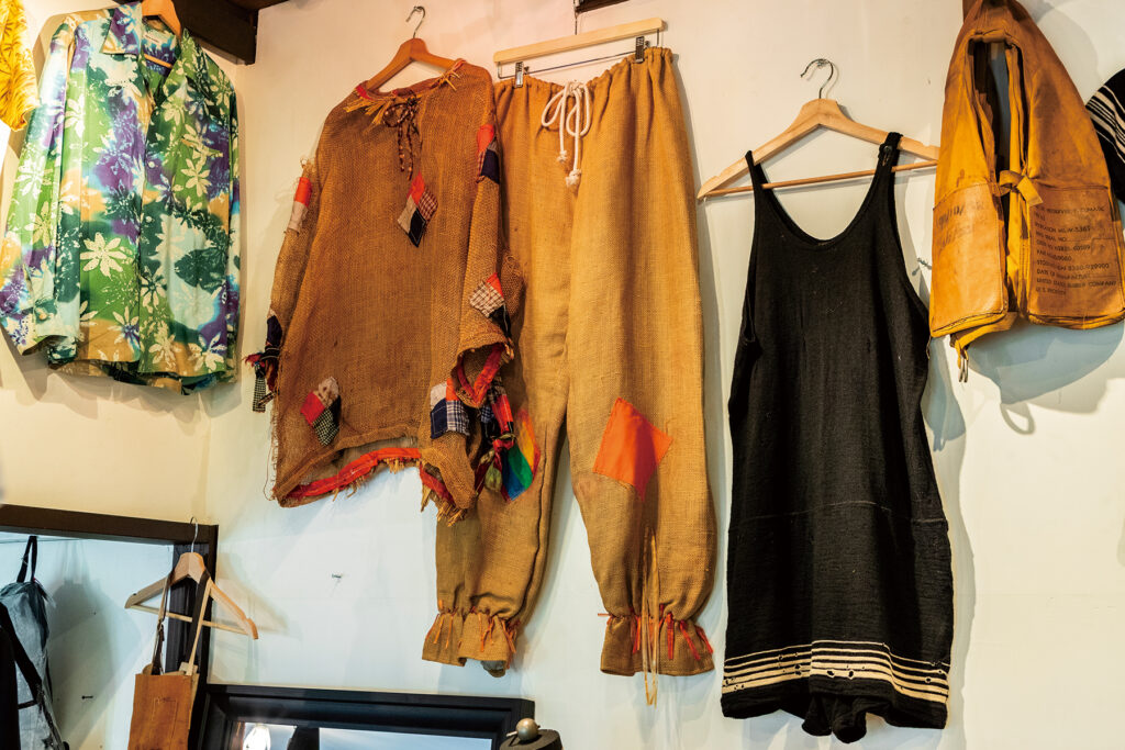 アメリカ、ヨーロッパの古着や食器、花瓶、雑貨、日本の骨董品など、お手頃な価格帯の商品からコアなヴィンテージが並びます。ミリタリー、アウトドア、アメカジに加え、海外映画や舞台の衣装など、ジャンルには捉われず、「群馬でもしっかり古い物や面白い古着を届けたい」という新井さんのこだわりのもとセレクトされています。