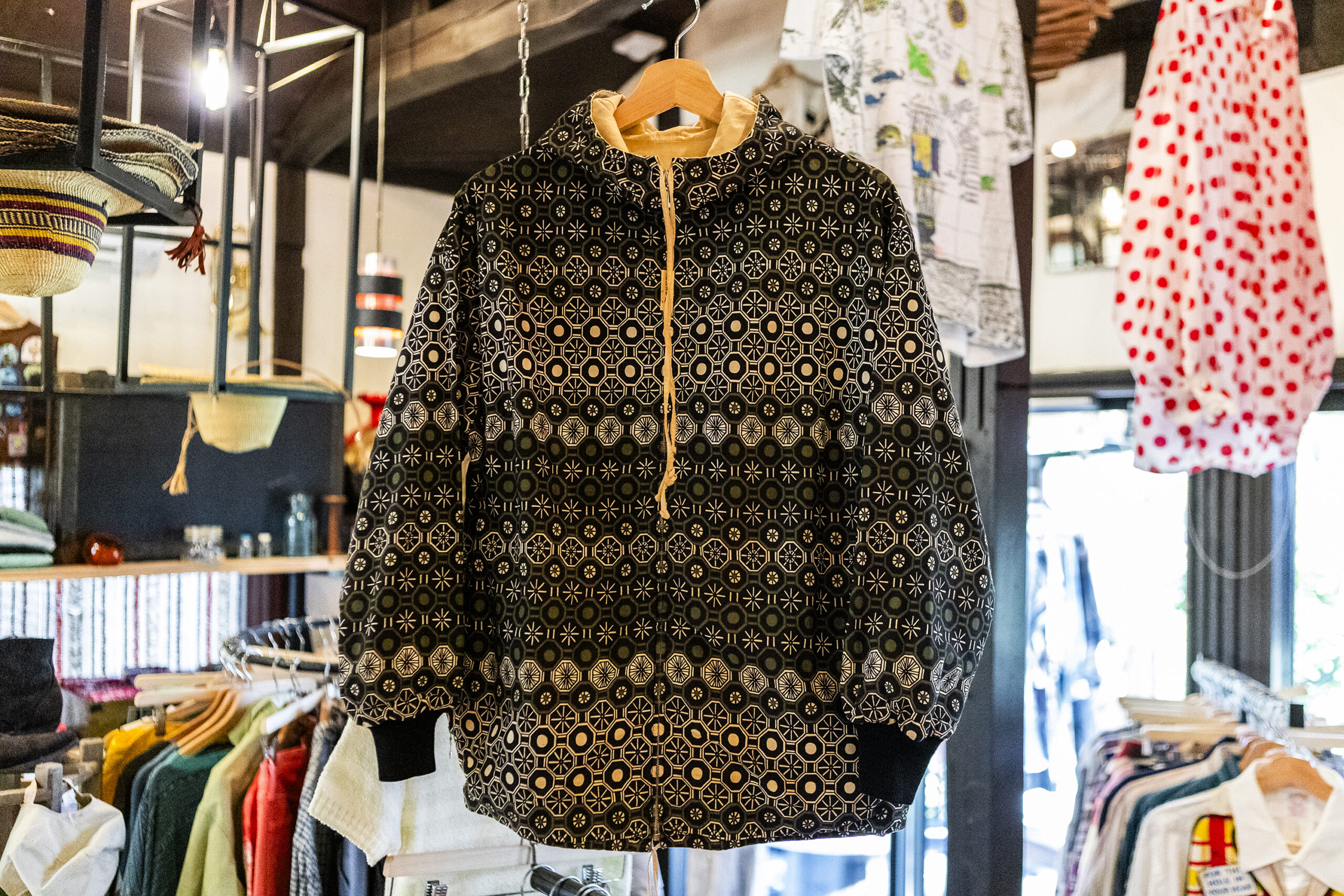 古着の定番、Levi’sのジーンズもプレミアムラインとしてモードな雰囲気をまとった「Levi’s Red」のものを置いてみたり、新井さんのお気に入りという50sのスキーウェアもコットン生地やあまり見かけない柄が珍しいですよね。