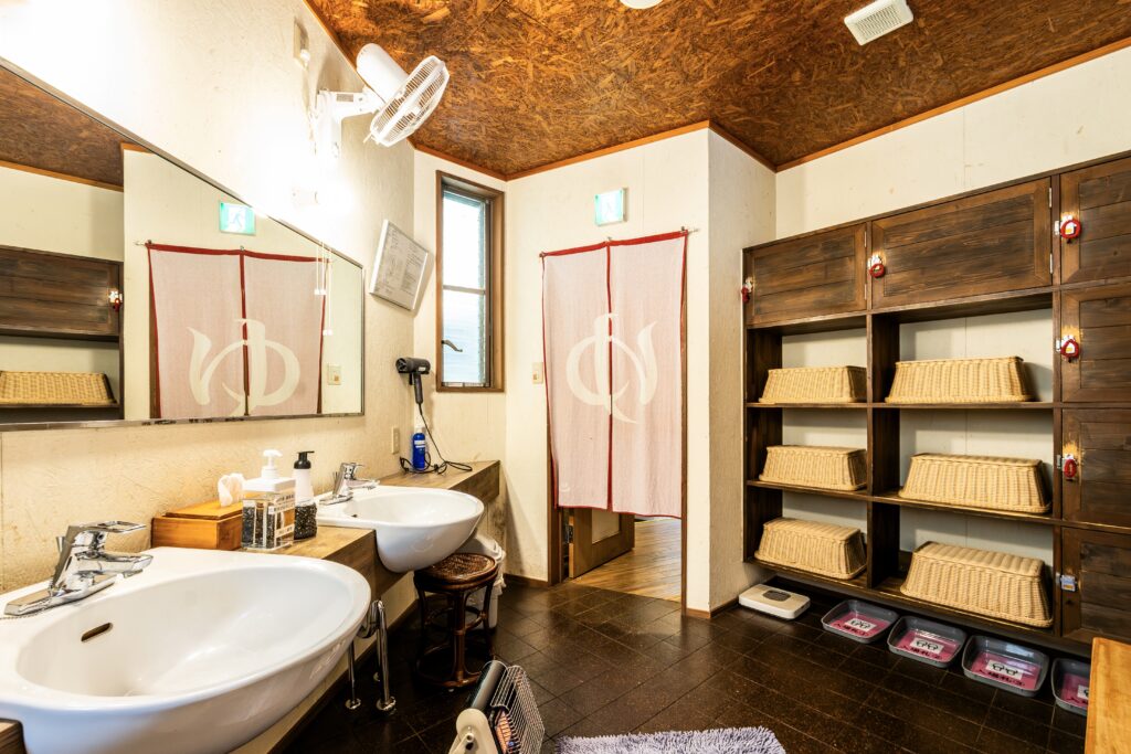 掃除の行き届いた清潔な脱衣所。スリッパの履き違えもないよう、細かいところまで工夫されており、快適に入浴できます。