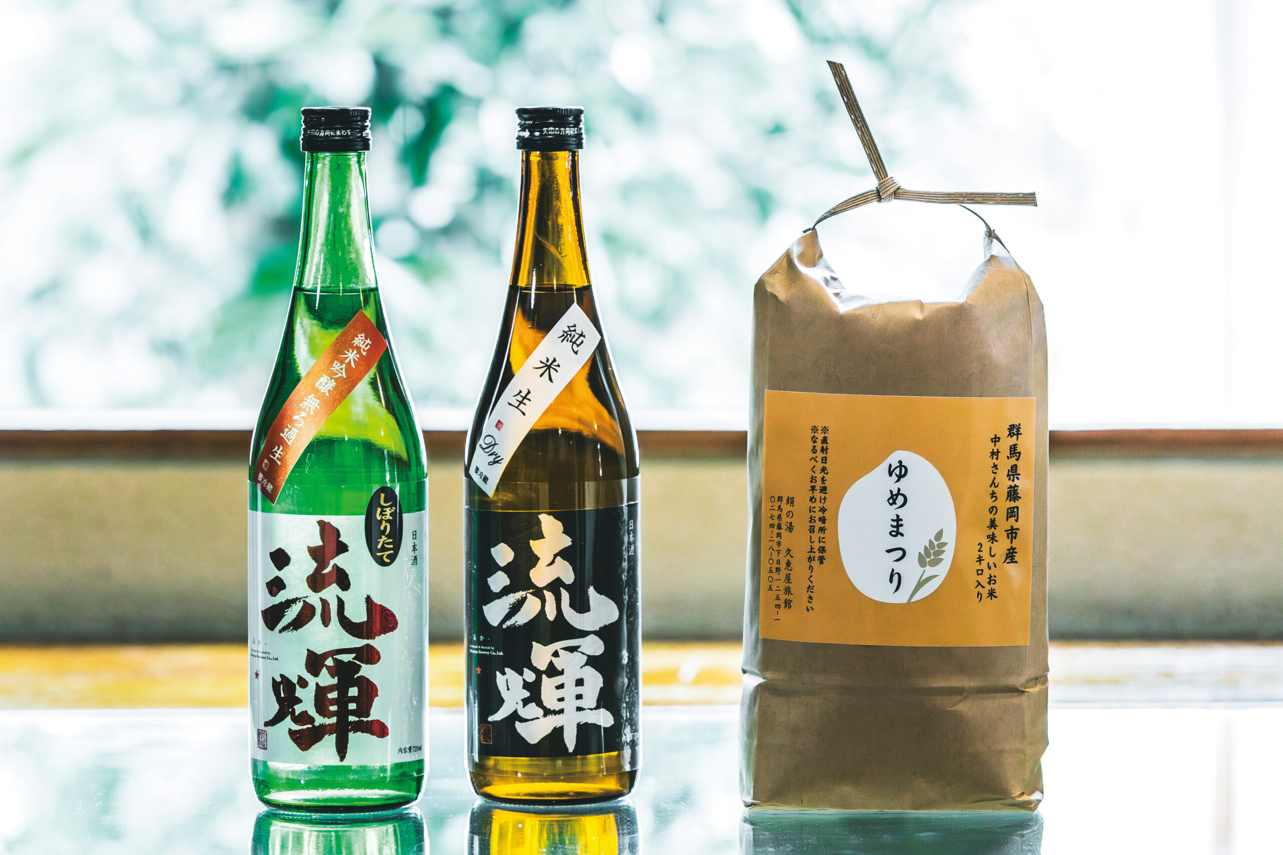お土産に、藤岡市の松屋酒造の地酒「流輝」や、食事にも提供している地元農家の「ゆめまつり」も買って帰ることができます。