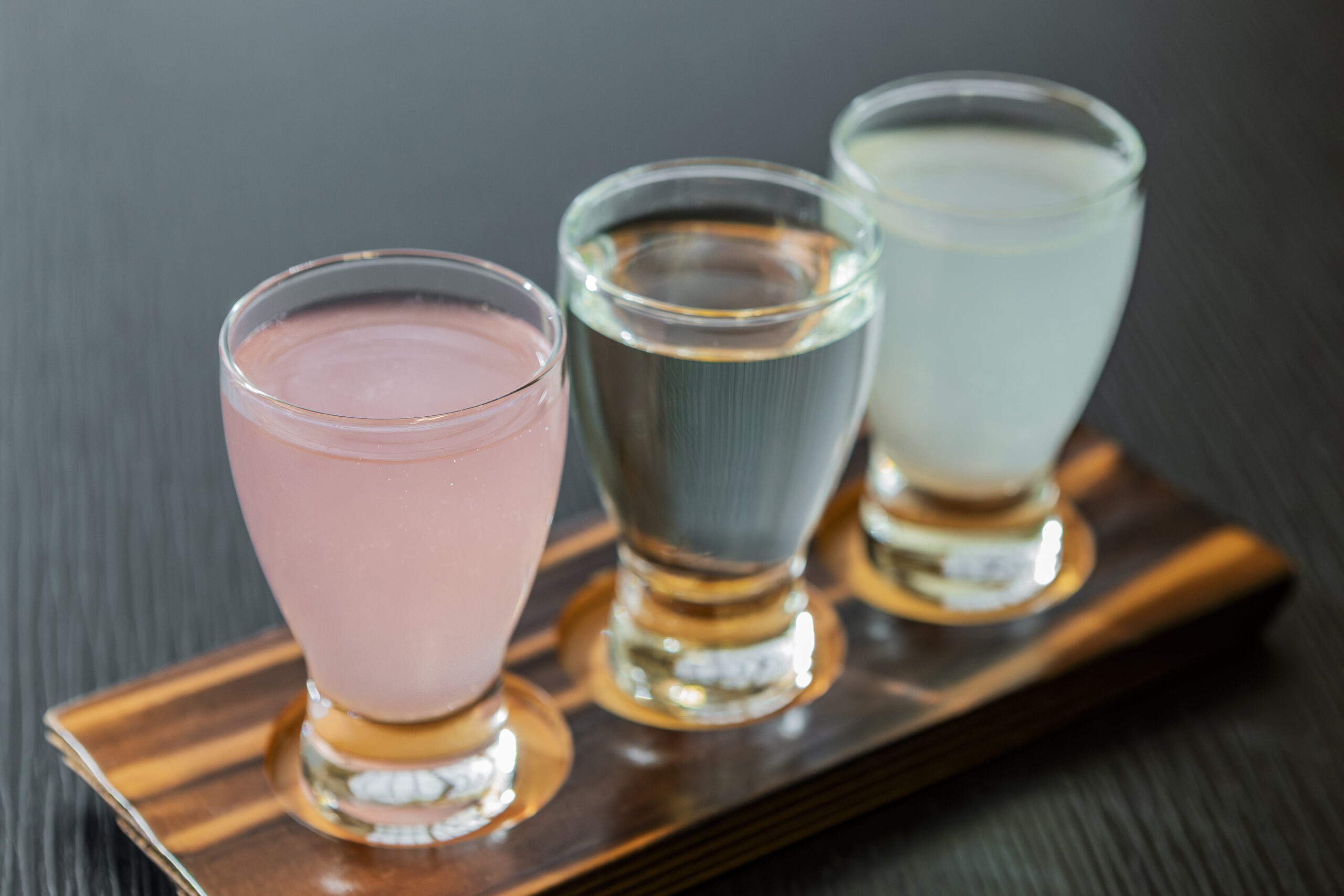 オプションで、地元・藤岡市内の「松屋酒造」が手がける「流輝(るか)」の飲み比べができるのも嬉しい!この日は、左から「季節・山田錦・期間限定」の3種類の流輝でした。