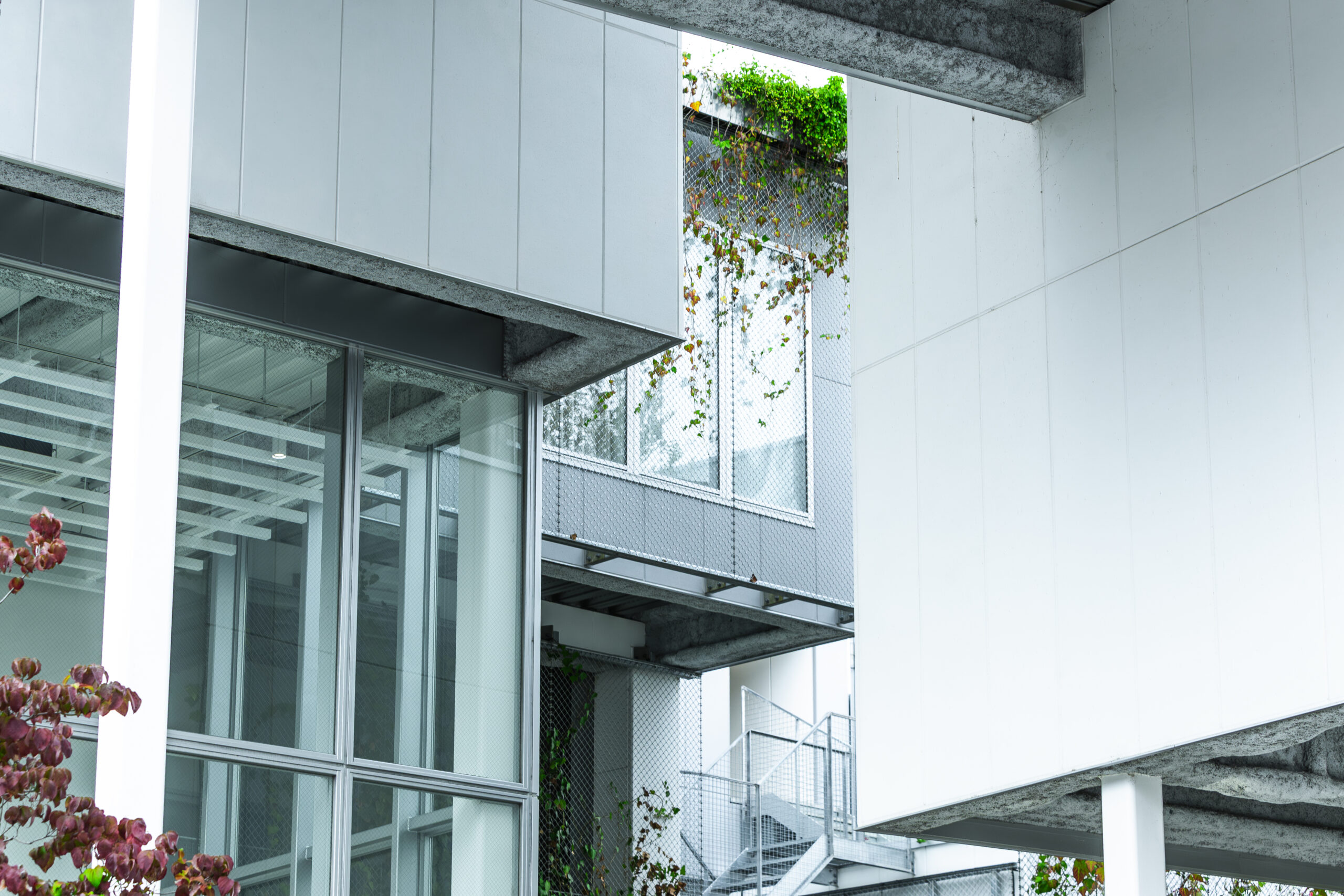 2〜4Fまでのエリアは、住居(アートレジデンス)として使われており、各住戸に大きなテラスが付いた開放的な造りになっています。建物のヴォイド部分を縫うように街の空気や匂いが入り込み、それらと共生している状態です。2024年4月からは民泊として宿泊できるエリアが新たに追加され、滞在して前橋を楽しむ拠点としても利用できるようになりました。AirBNBなどからも予約が出来ます。